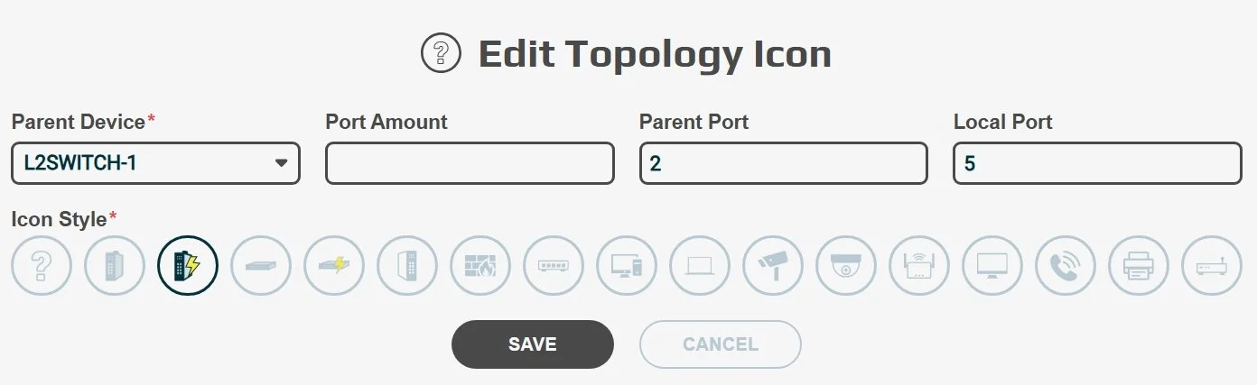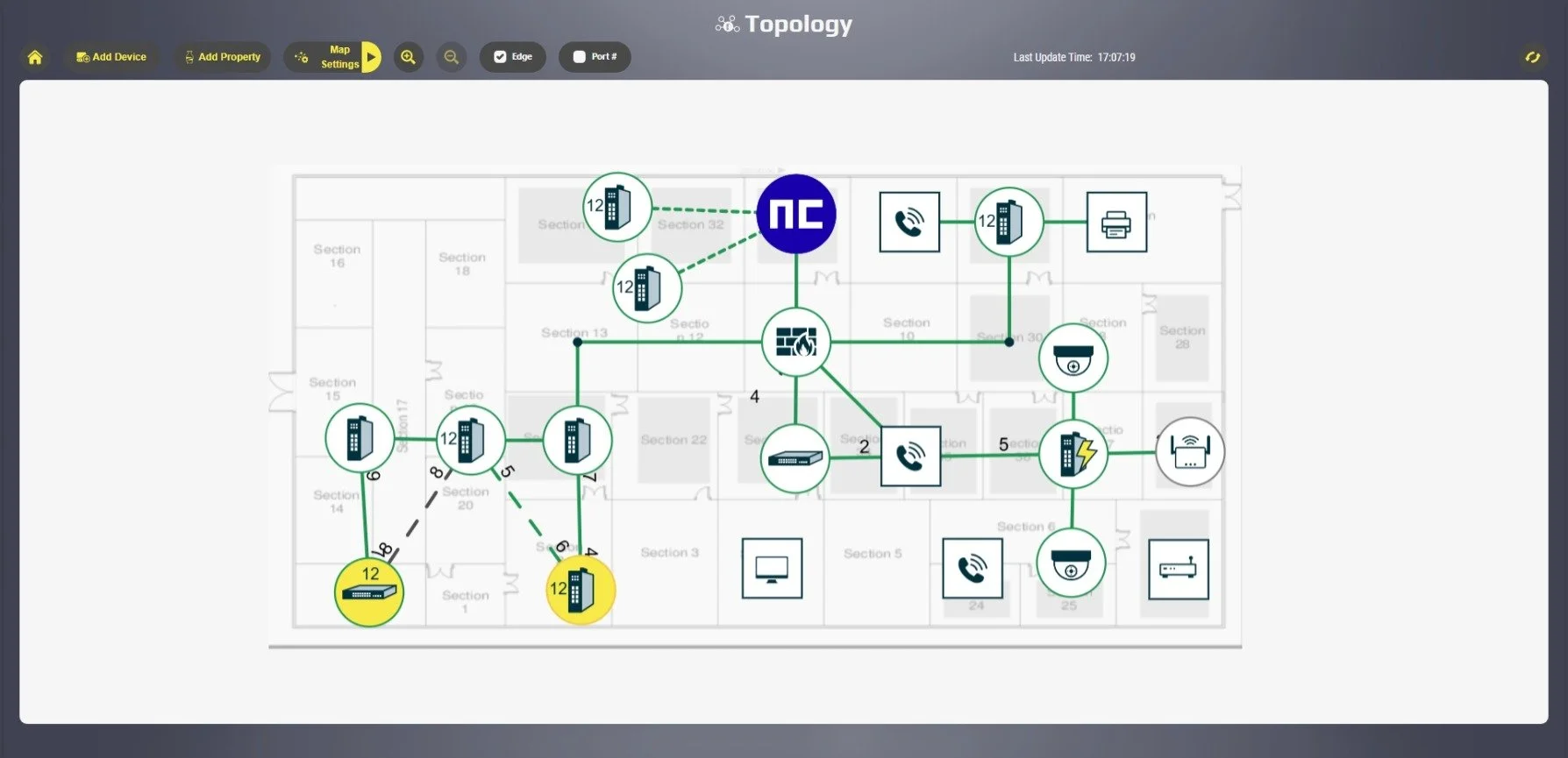 Manually place non-managed devices or facility icons to create a complete picture of your infrastructure.